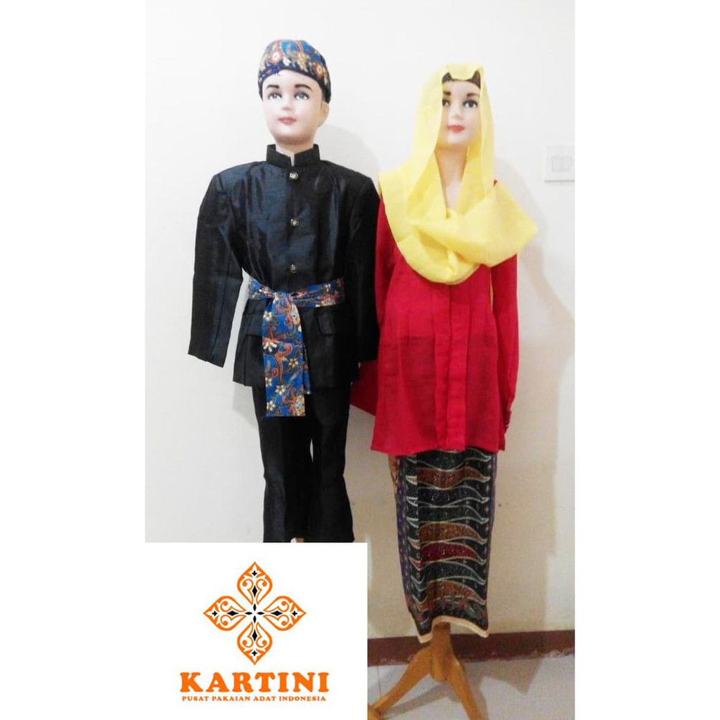 Jadi, bisa dikatakan jika baju sadariah juga bagian dari pakaian adat jakarta. Seperti yang bisa kamu lihat di gambar pakaian adat betawi, baju . Etnis ini merupakan hasil perkawinan antar. Pada kesempatan kali ini kami akan membahas mengenai pakaian adat betawi ✓beserta nama baju adat betawi dan penjelansannya✌. Model busana jakana/betawi ada unsur persamaan dengan kebaya . Pakaian adat khusus pria betawi · 1. Dapatkan pakaian adat betawi di indonesia. Macam macam baju adat jakarta: Peci atau kopyah · 5. · baju anak laki laki. Perkembangan dacatat dan digali mengenai pakaian adat tradisional betawi pada masa. Ilustrasi pakaian adat betawi (foto: Jual beli pakaian adat betawi online aman garansi shopee.